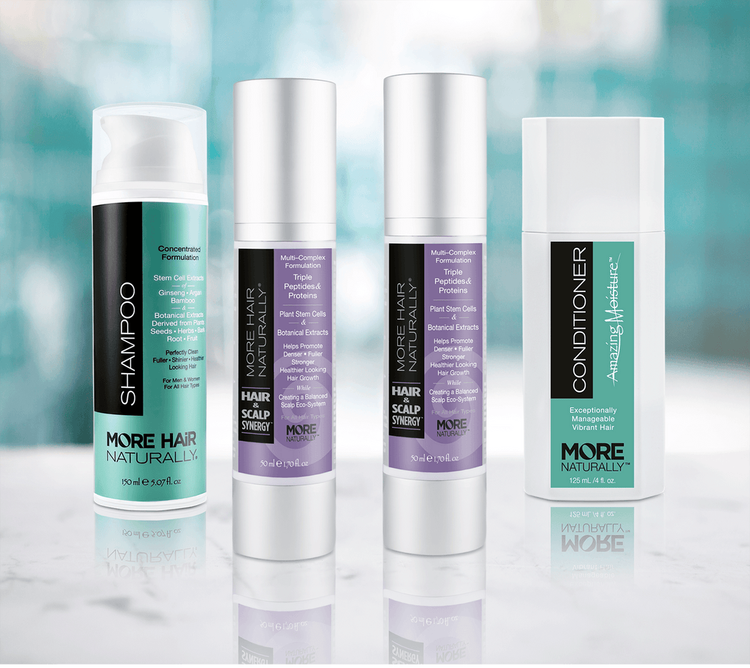 If you are ready to make a change to the condition of your hair, but want to take it one step at a time, this kit is for you. More Hair Naturally® Shampoo and Conditioner will restore the volume, silk and shine to your damaged hair while the Hair & Scalp Synergy™ will apply a multi-complex formulation of triple enzymes, proteins, plant stem cells and botanical extracts to help activate and ignite the spark which helps bring your hair and scalp back to life!
