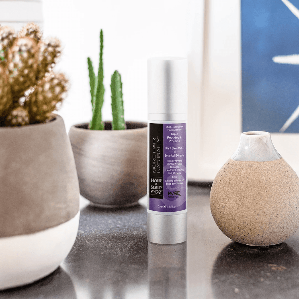 When dealing with thinning hair it is important to act quickly and aggressively. Part of doing that is approaching the problem from every angle possible. The Hair & Scalp Synergy™, using plant stem cells and botanical extracts will help promote denser, fuller, stronger, healthier looking hair growth, while creating a balanced scalp eco-system. All of which is essential when it comes to dealing with thinning hair.