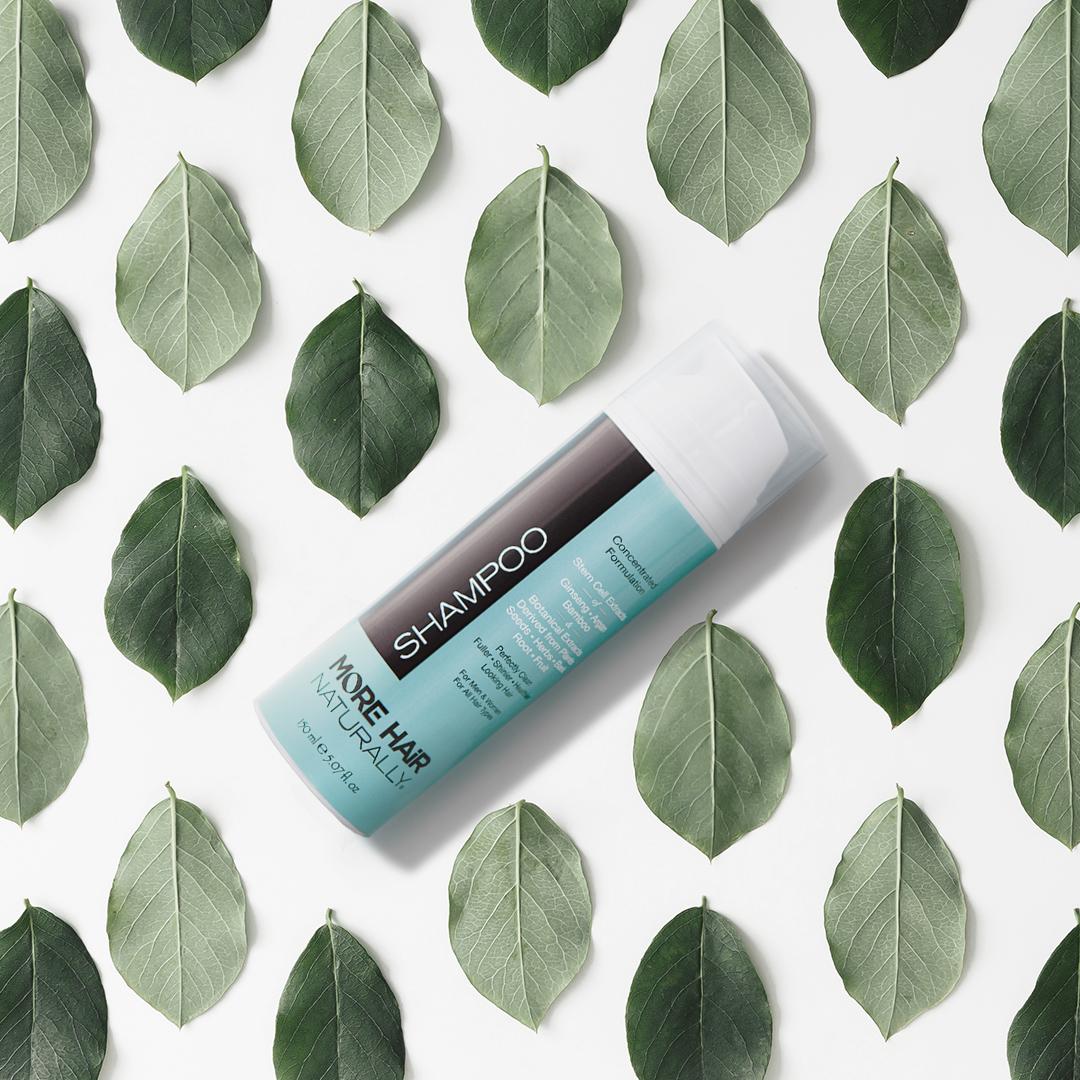 The More Hair Naturally Triple Stem Cell Shampoo is all natural and is best described as a hair purifier, rather than a shampoo. Its unique ingredients are all derived from botanical sources.